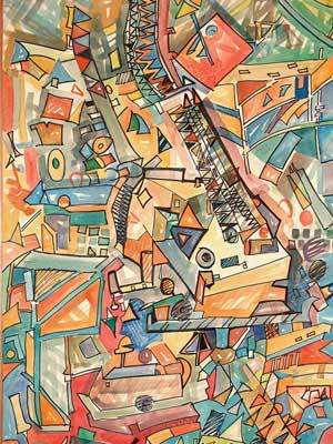 Medium: Watercolours, gouache, pencil, ink, mirror and glass on paper