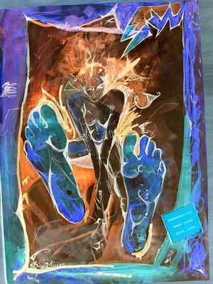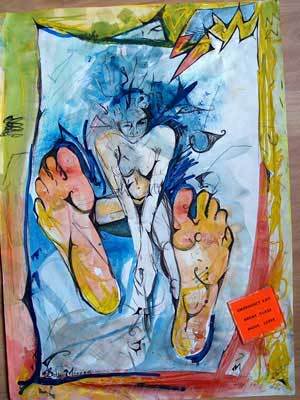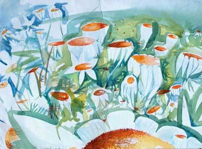Medium: Watercolour, biro, ink, cotton / metallic threads, organic matter
